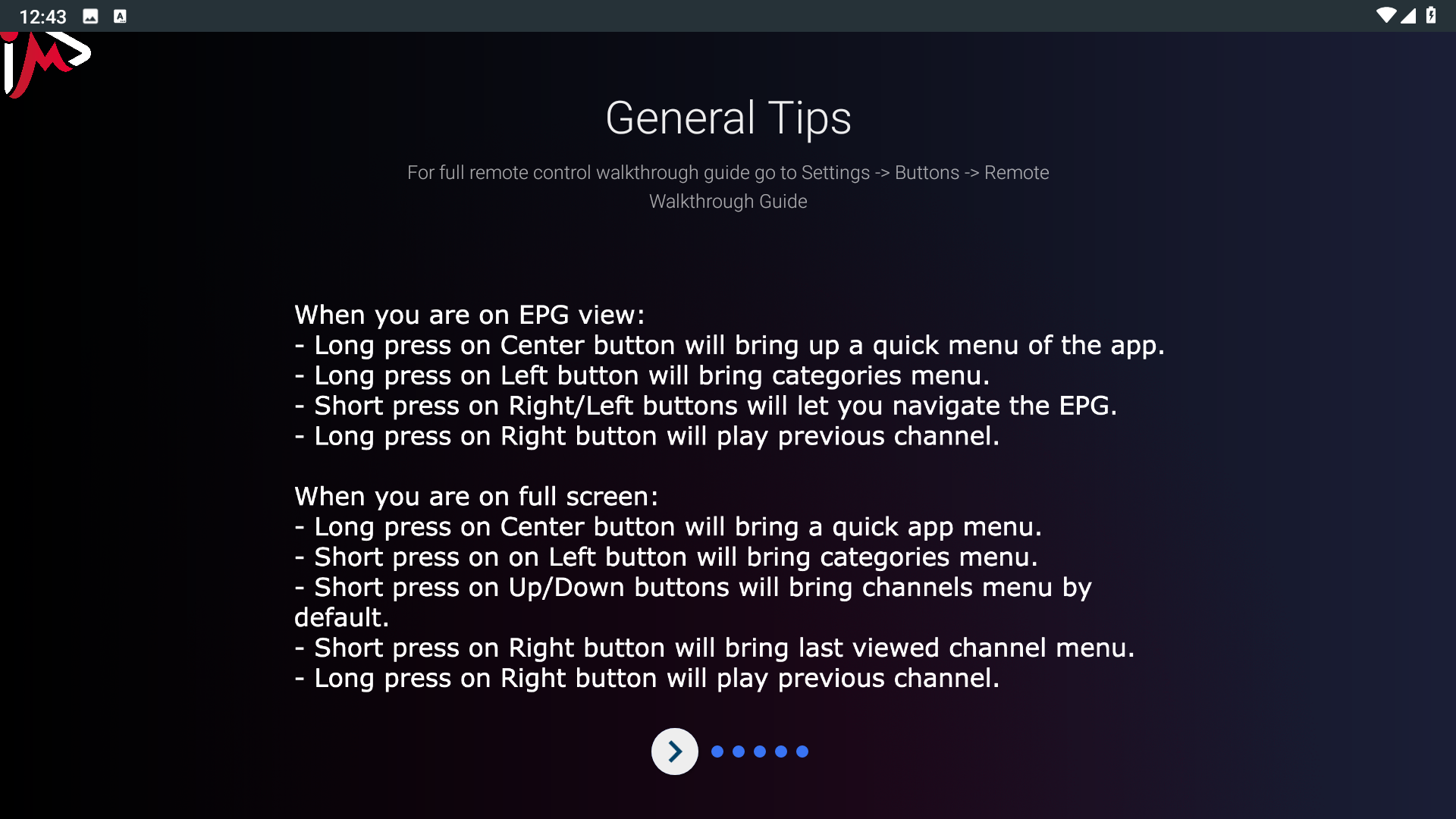 Once your playlist is installed, iMPlayer will show a short walkthrough guide.